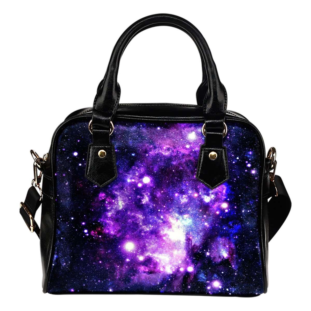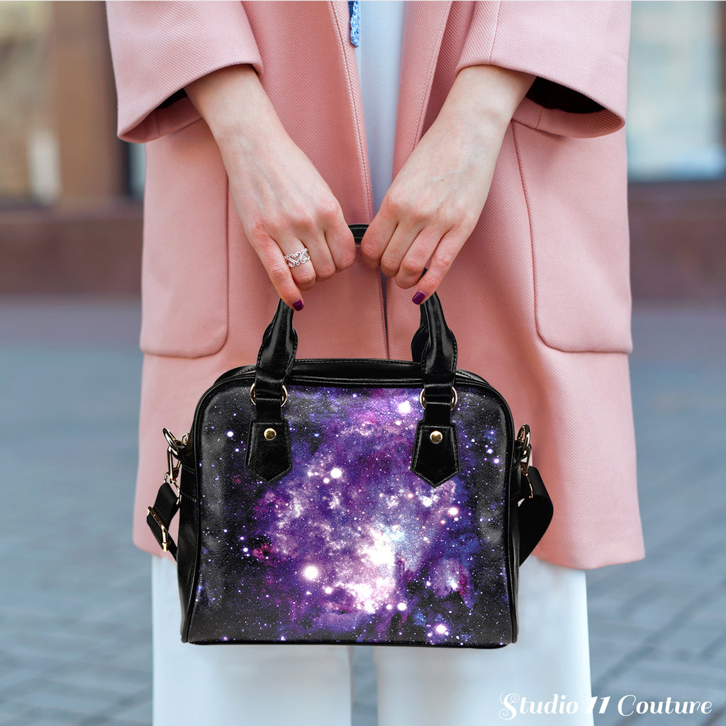 Galaxy #3 Theme Women Fashion Shoulder Handbag Black Vegan Faux Leather