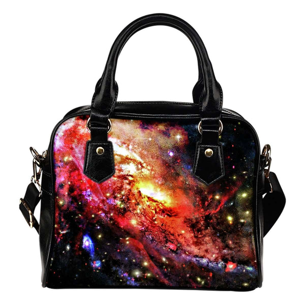 Galaxy #6 Theme Women Fashion Shoulder Handbag Black Vegan Faux Leather
