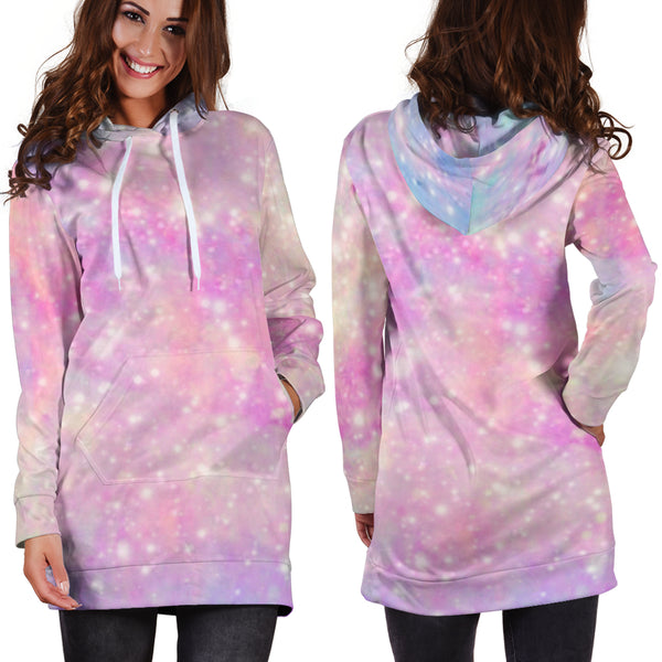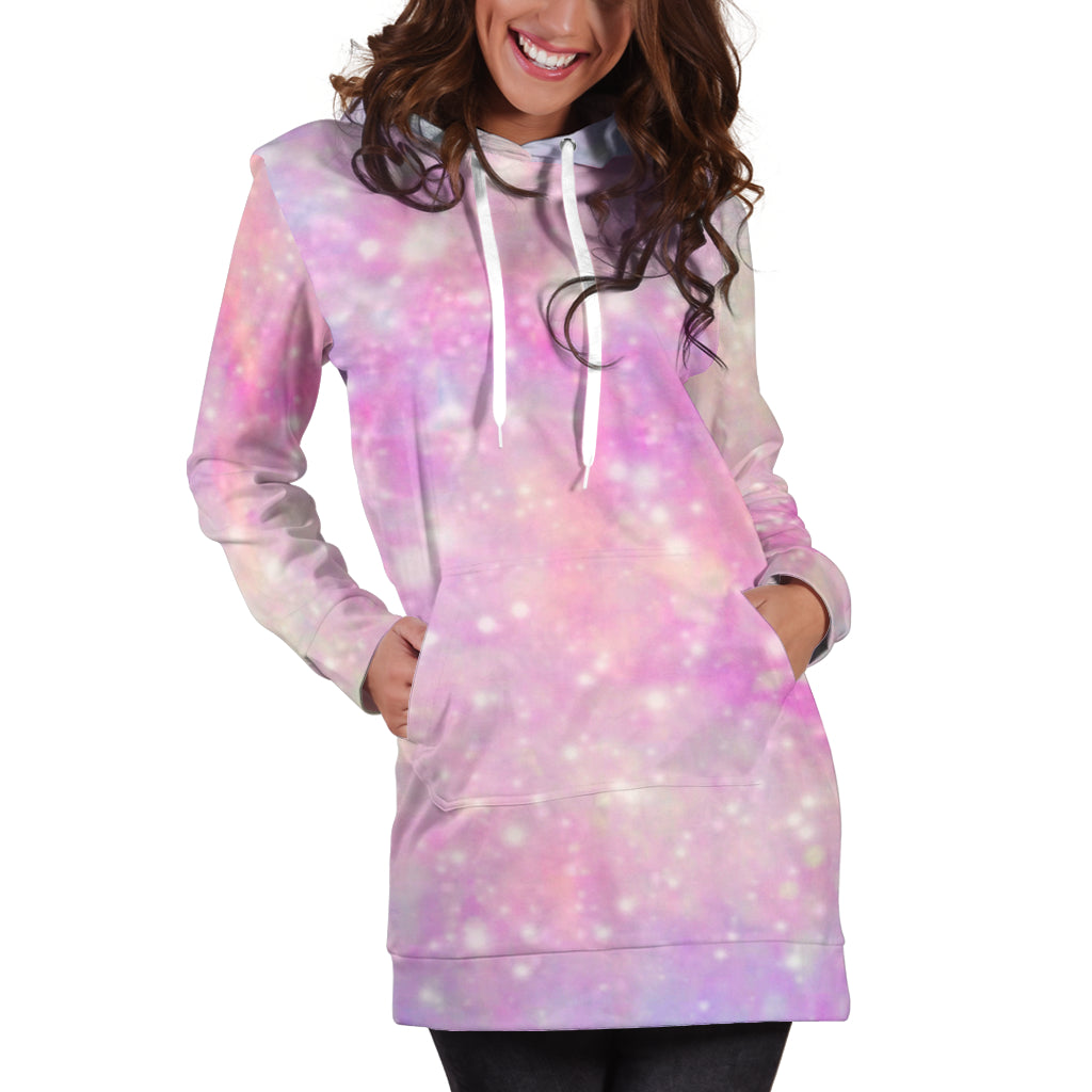 Studio11Couture Women Hoodie Dress Hooded Tunic Galaxy Pastel 6 Athleisure Sweatshirt