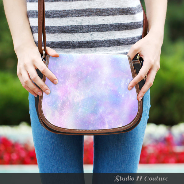 Galaxy Pastel 7 Crossbody Shoulder Canvas Leather Saddle Bag