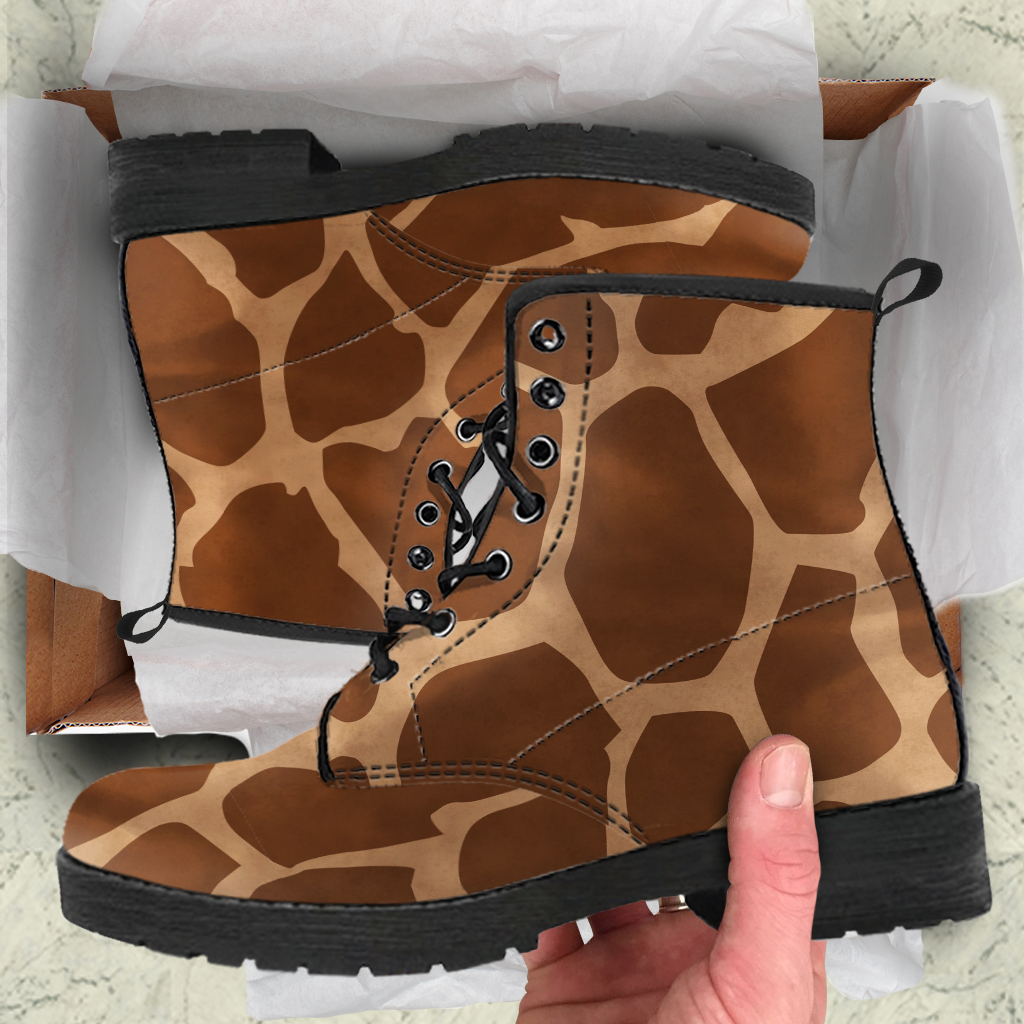 - Features eco-friendly leather with a double-sided print and rounded toe construction.