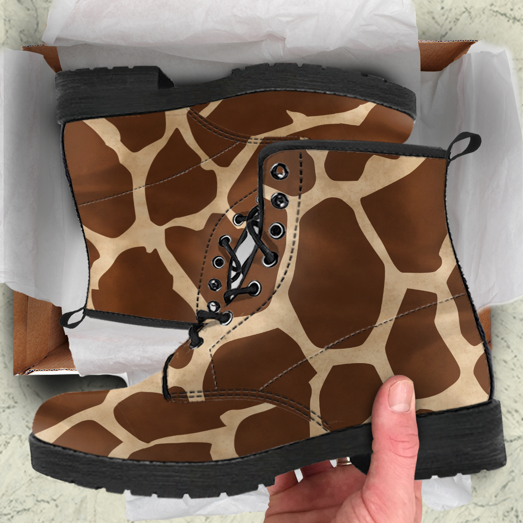 - Features eco-friendly leather with a double-sided print and rounded toe construction.