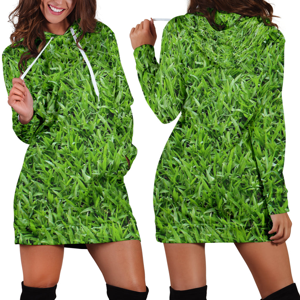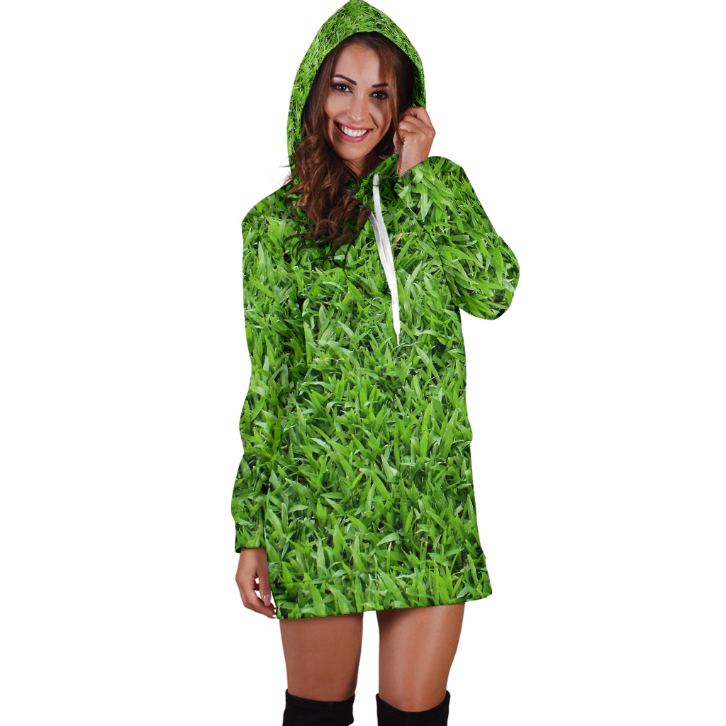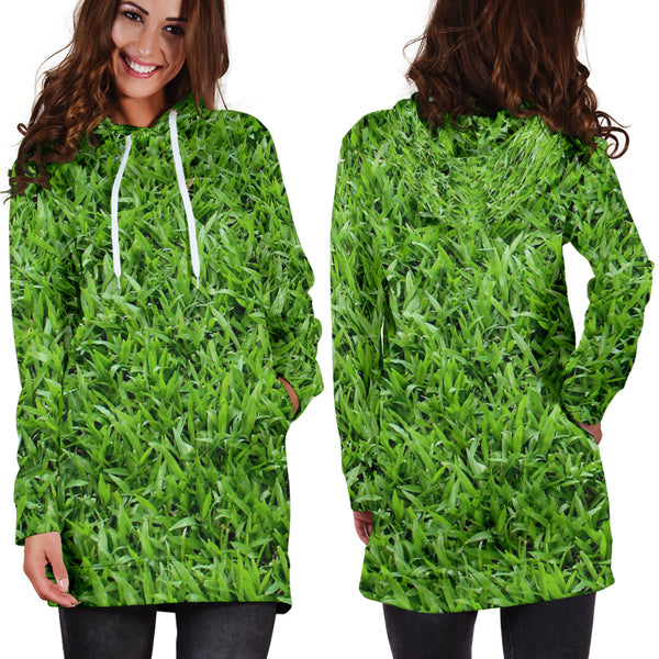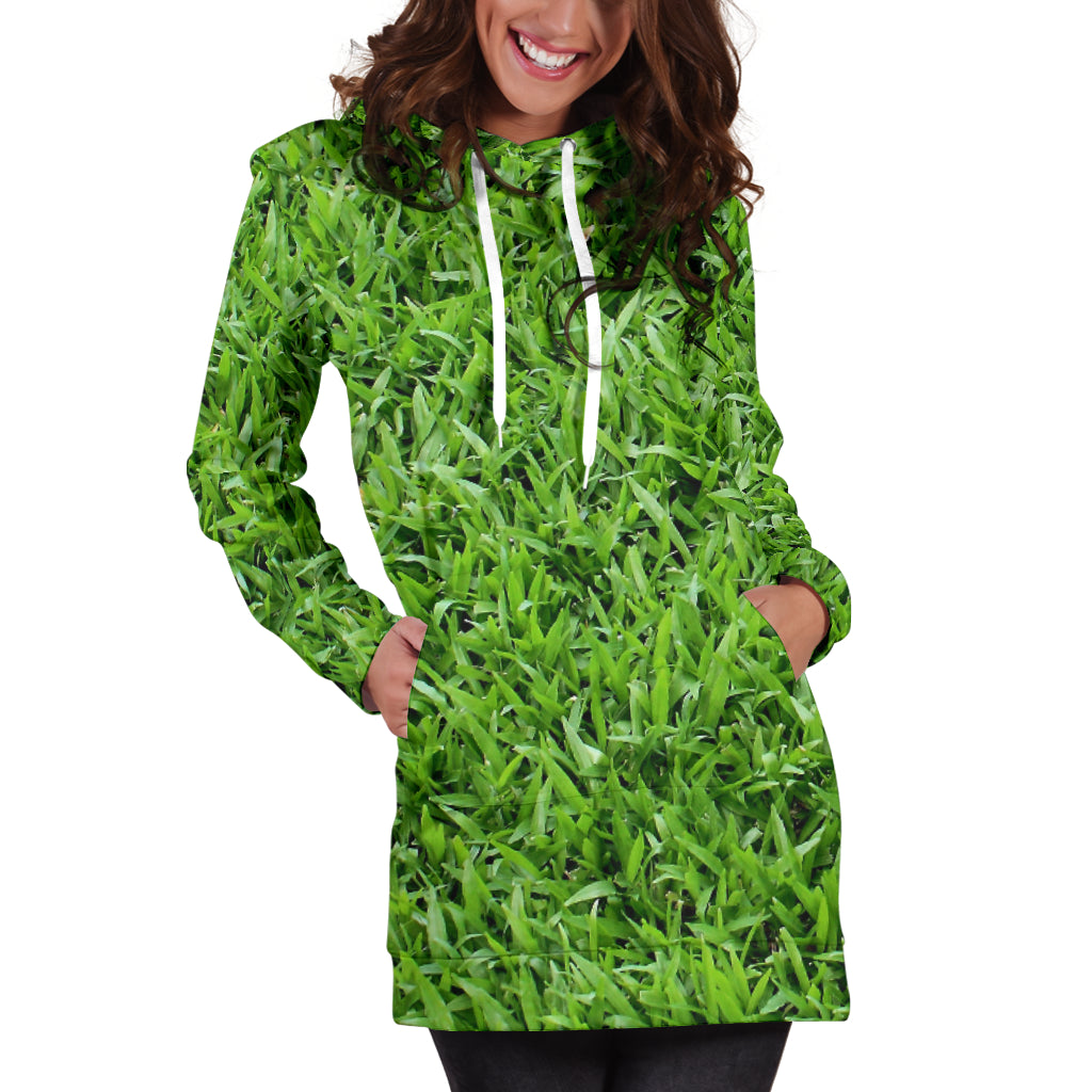Studio11Couture Women Hoodie Dress Hooded Tunic Grass Nature Athleisure Sweatshirt