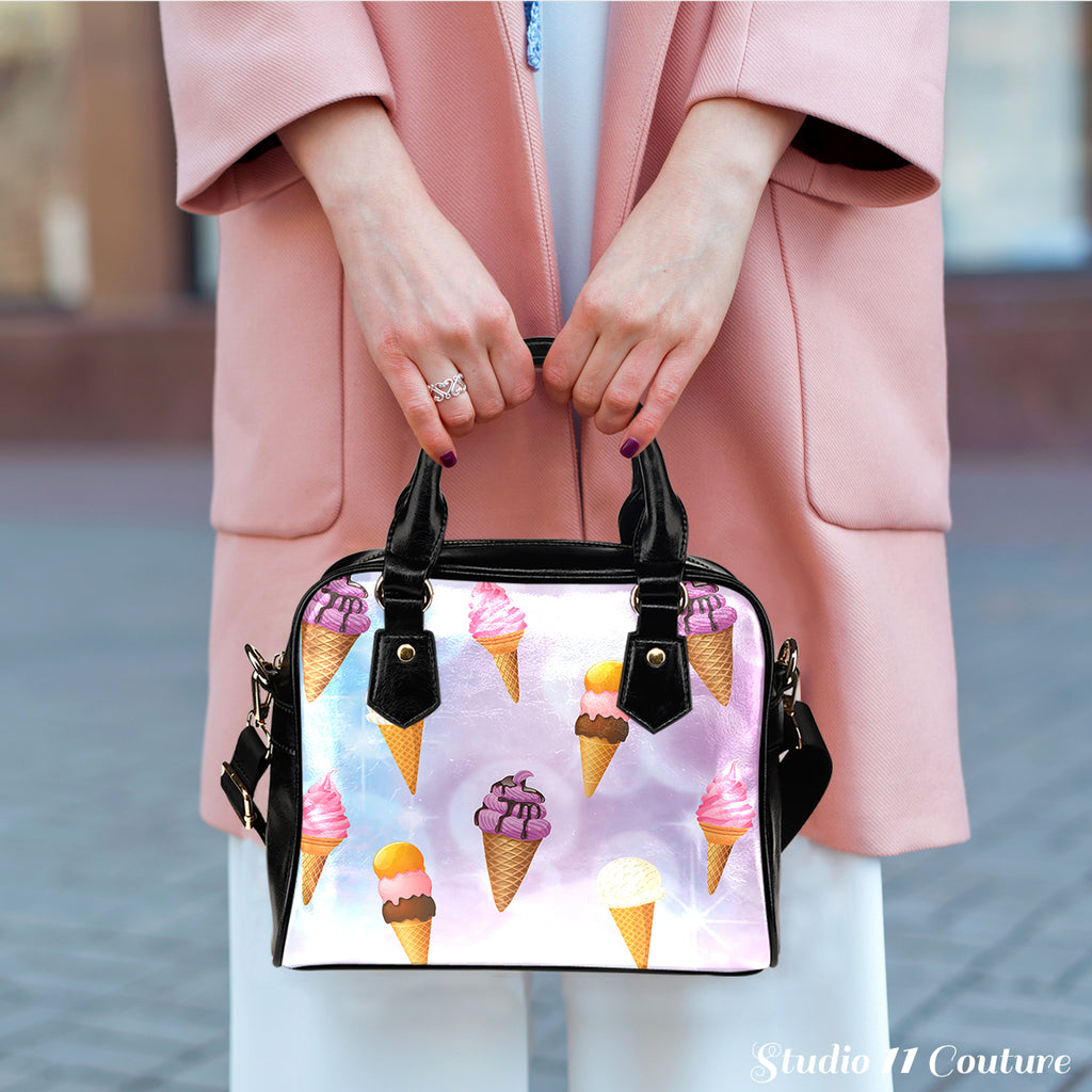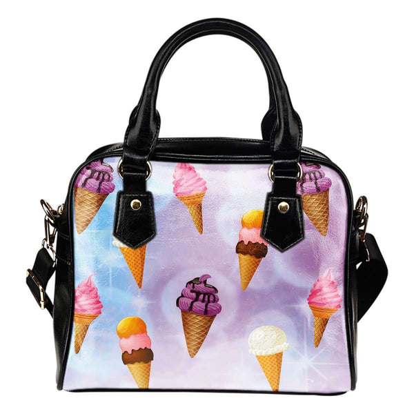 Ice Cream #1 Dessert Kawaii Lolita Theme Women Fashion Shoulder Handbag Black Vegan Faux Leather