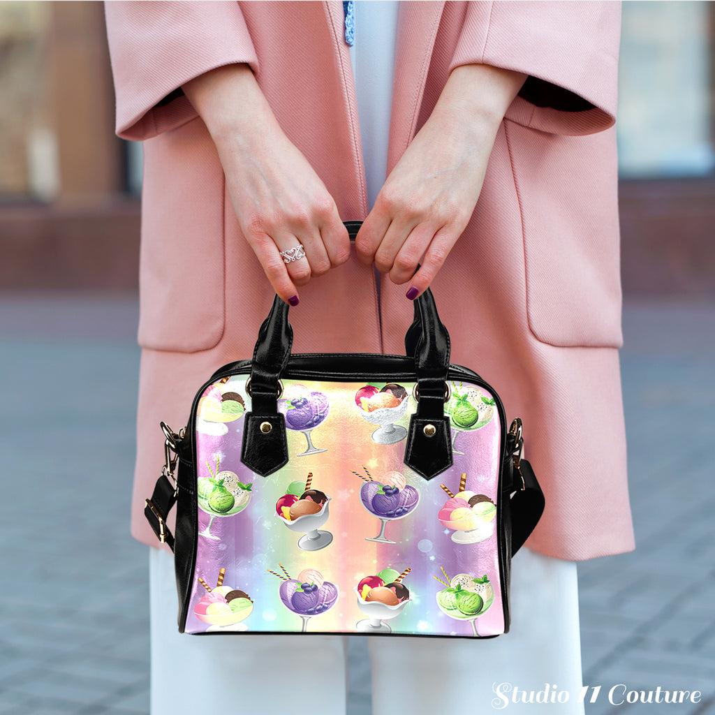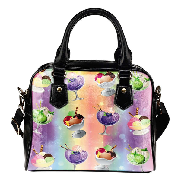 Ice Cream #10 Dessert Kawaii Lolita Theme Women Fashion Shoulder Handbag Black Vegan Faux Leather
