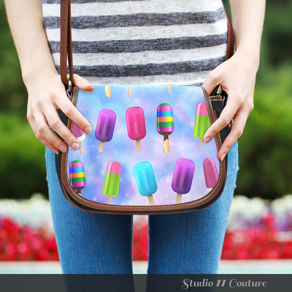 Ice Cream 2 Crossbody Shoulder Canvas Leather Saddle Bag