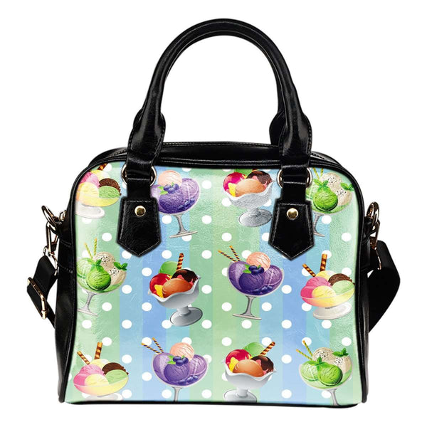 Ice Cream #4 Dessert Kawaii Lolita Theme Women Fashion Shoulder Handbag Black Vegan Faux Leather