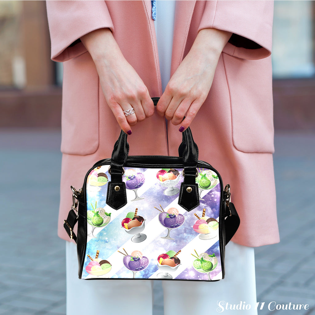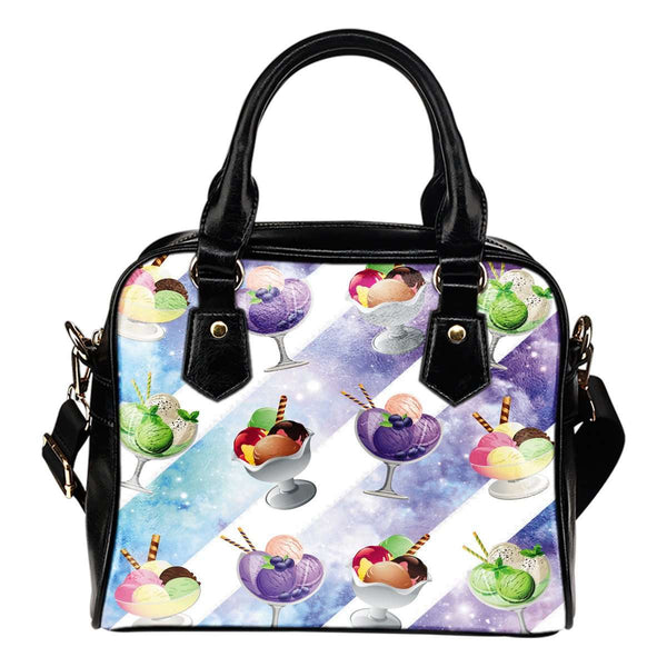 Ice Cream #6 Dessert Kawaii LolitaTheme Women Fashion Shoulder Handbag Black Vegan Faux Leather