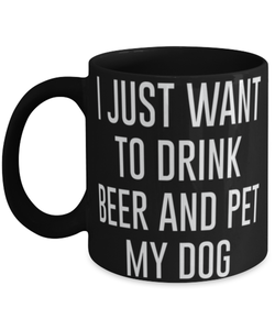 Ijust want to drink beer and pet my dog, Coffee Mug