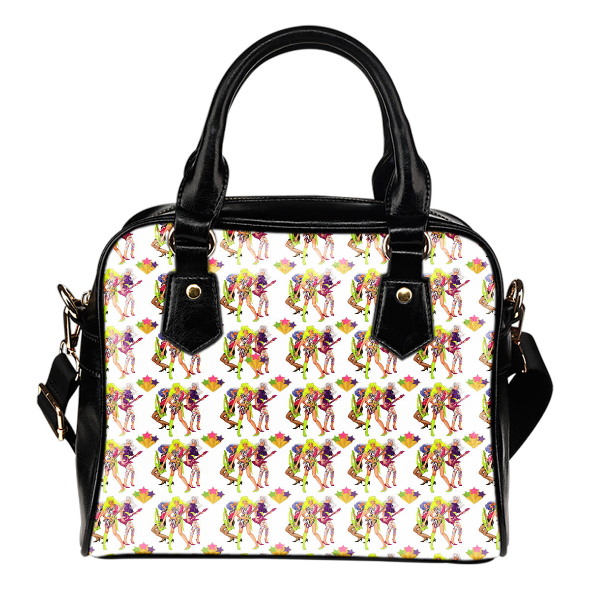 Jems and Holograms Themed Design B5 Women Fashion Shoulder Handbag Black Vegan Faux Leather
