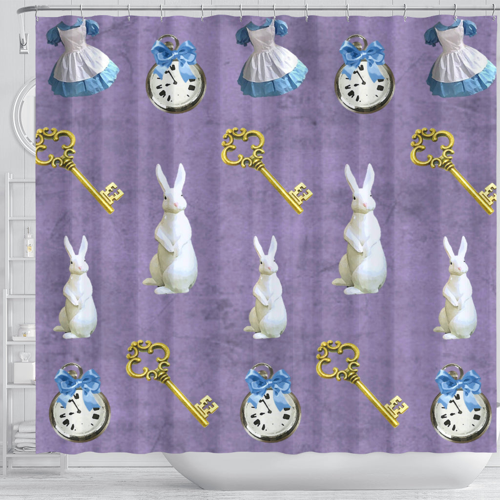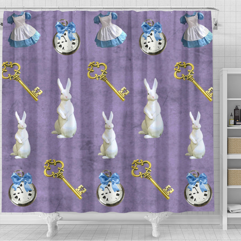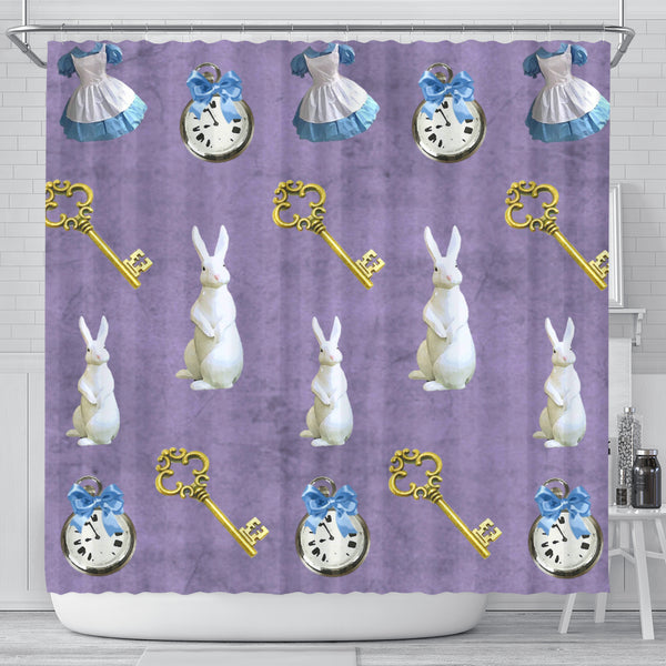 Keys And White Rabbit Alice In Wonderland Shower Curtain