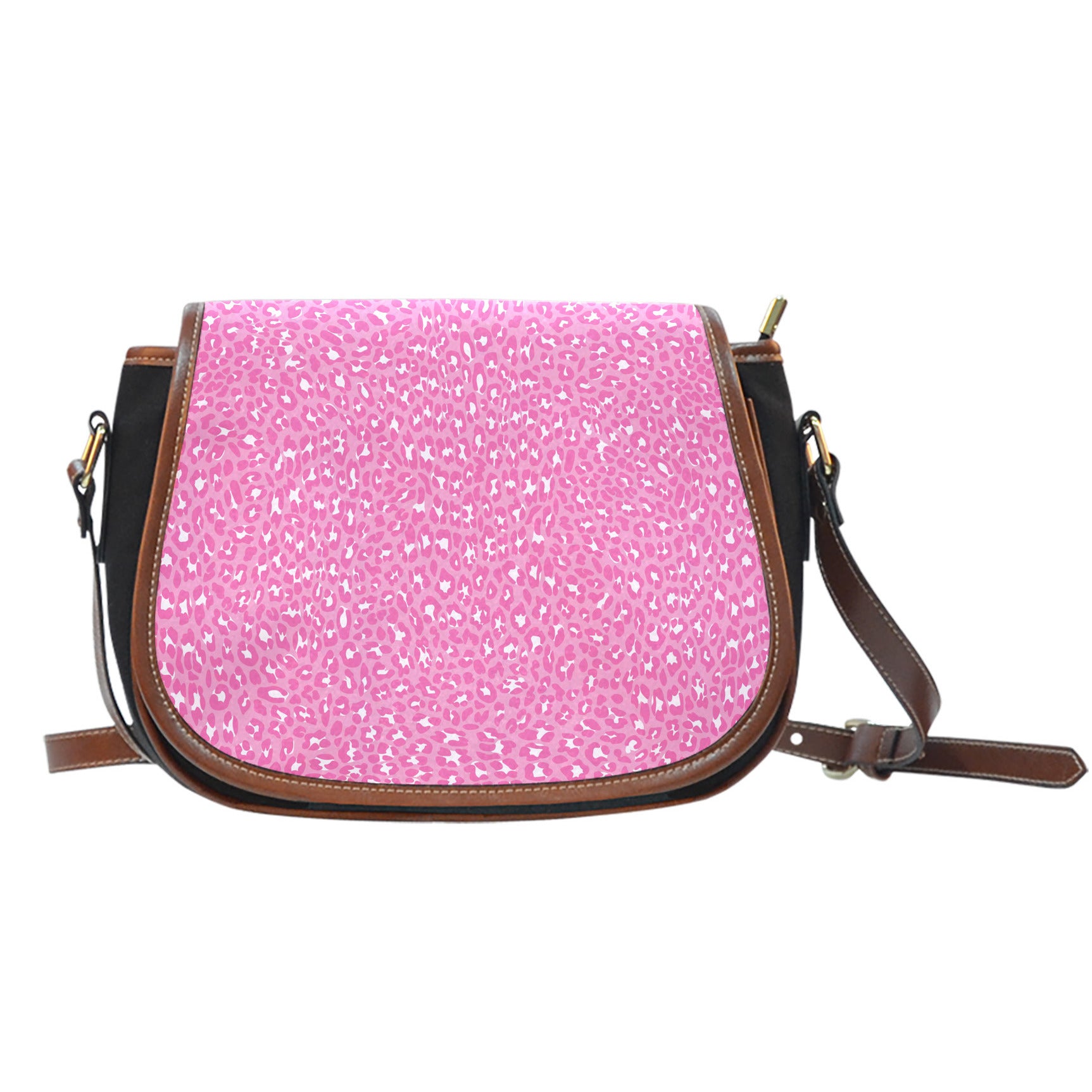 Leopard Print Themed Design 06 Crossbody Shoulder Canvas Leather Saddle Bag