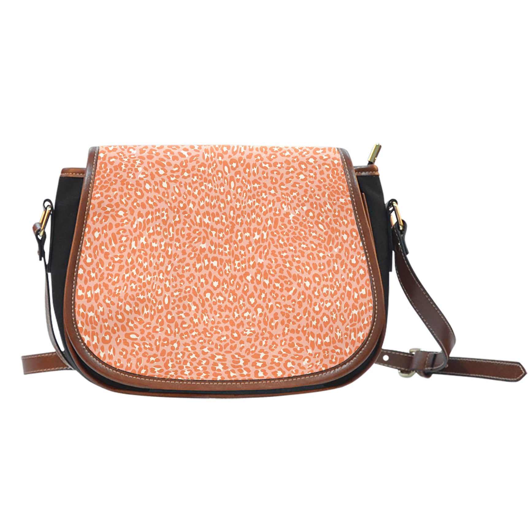 Leopard Print Themed Design 07 Crossbody Shoulder Canvas Leather Saddle Bag