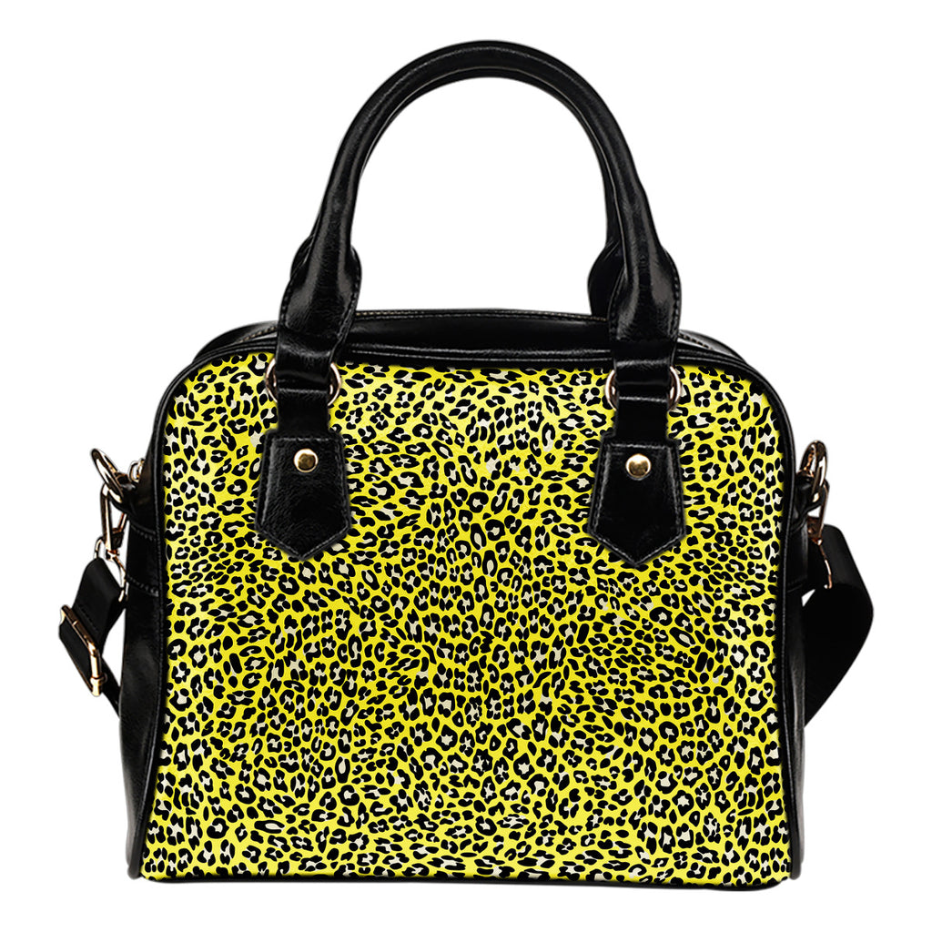 Leopard Print Themed Design B5 Women Fashion Shoulder Handbag Black Vegan Faux Leather