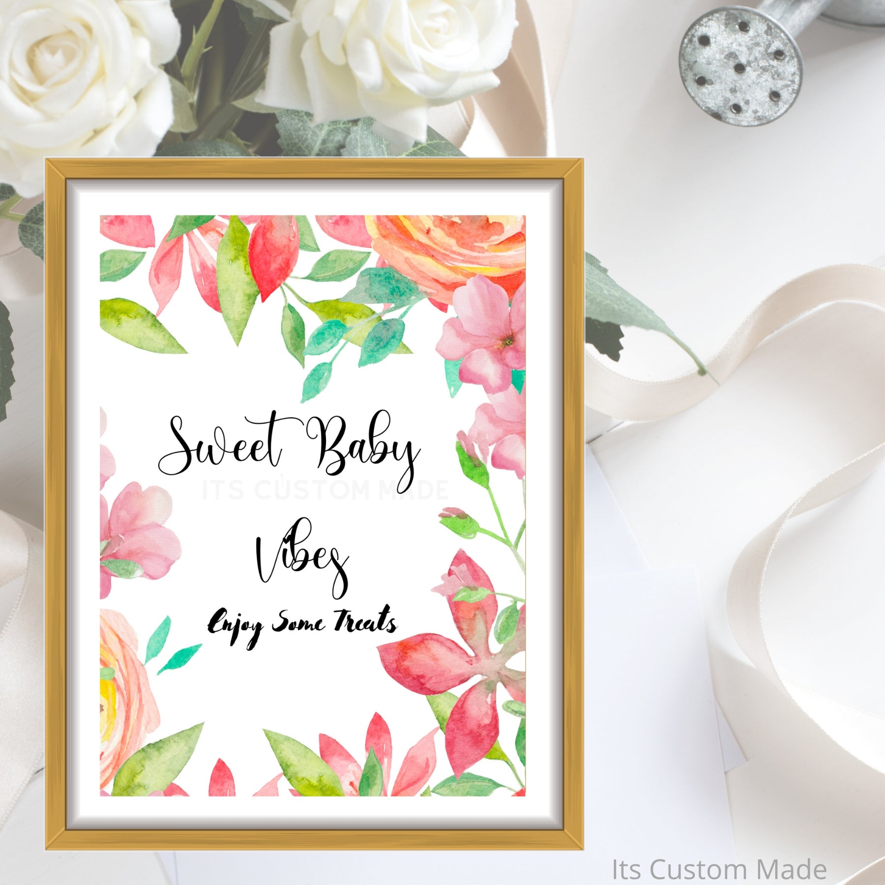 Llama Baby Shower Dessert Party Table Wall Art Sign - Sweet Baby Vibes Wall Art Sign - Enjoy Some Treats Printable Wall Art - Boho Baby Shower Wall Art Decor - Llama Party Wall Art Decorations - Desserts Party Wall Art Sign