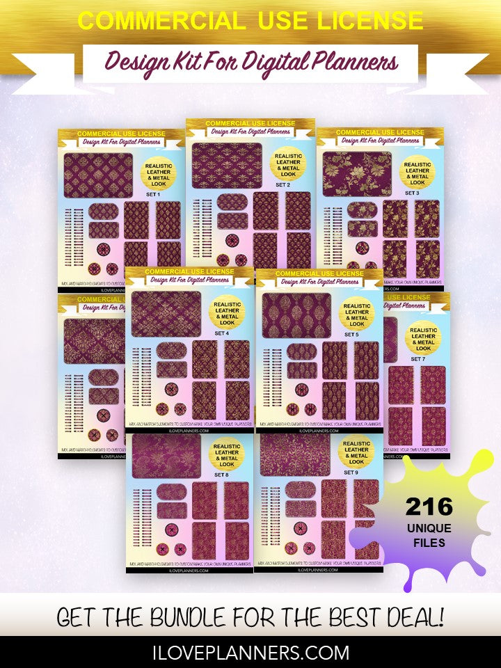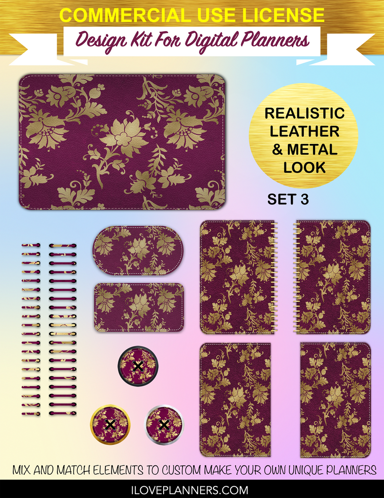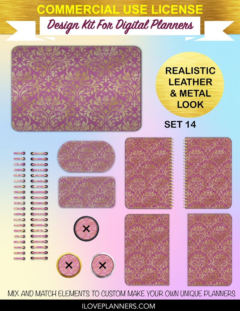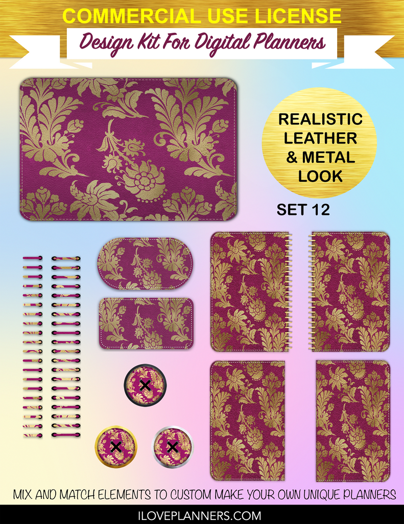 Magenta and Gold Digital Planners, Spirals, Coils, Customize Your Digital Planners, Commercial Use OK, Digital Planners, Digital Journals, Compatible for PC, Mac, CANVA. #77