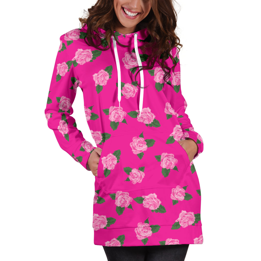 Studio11Couture Women Hoodie Dress Hooded Tunic Magenta Rose Athleisure Sweatshirt