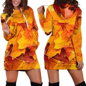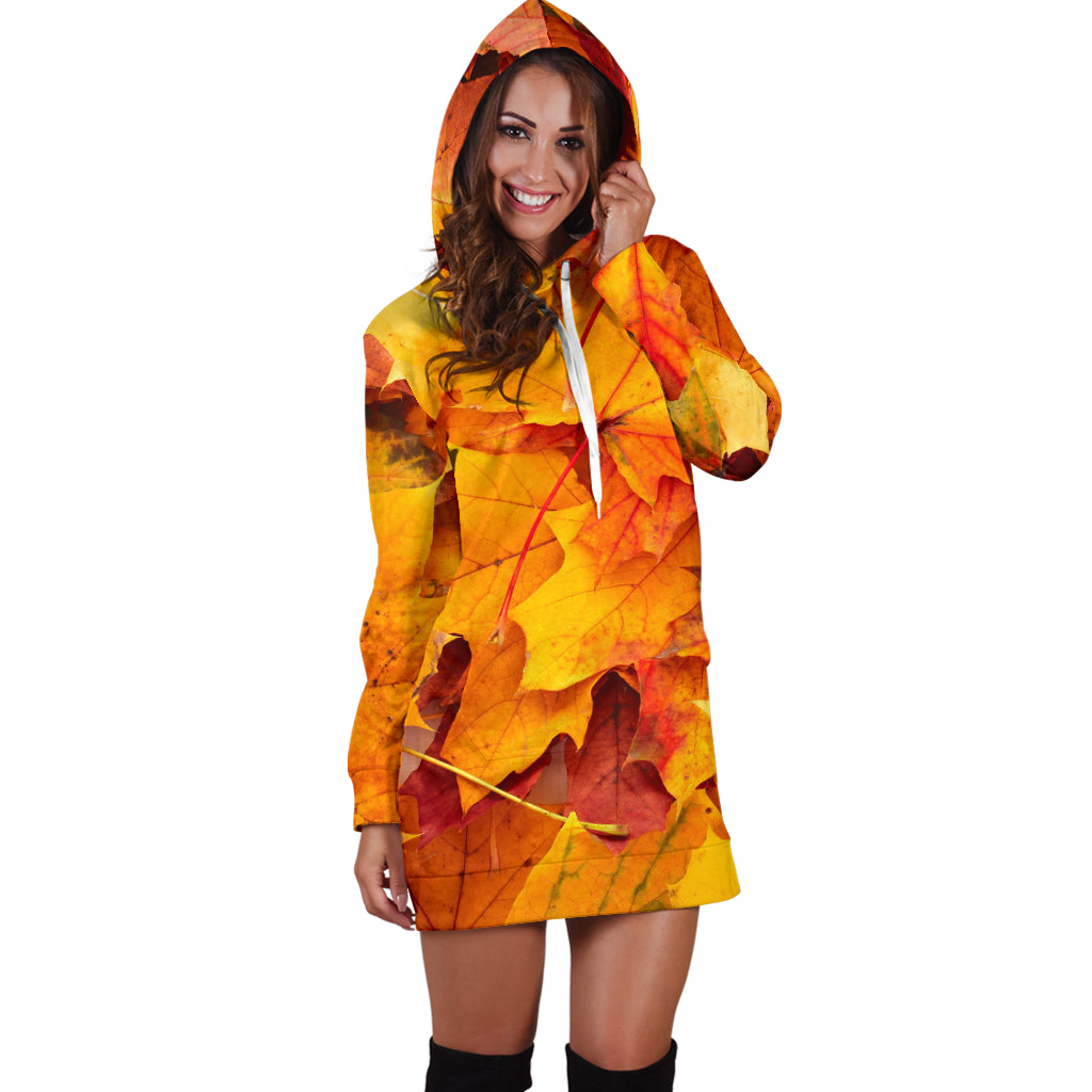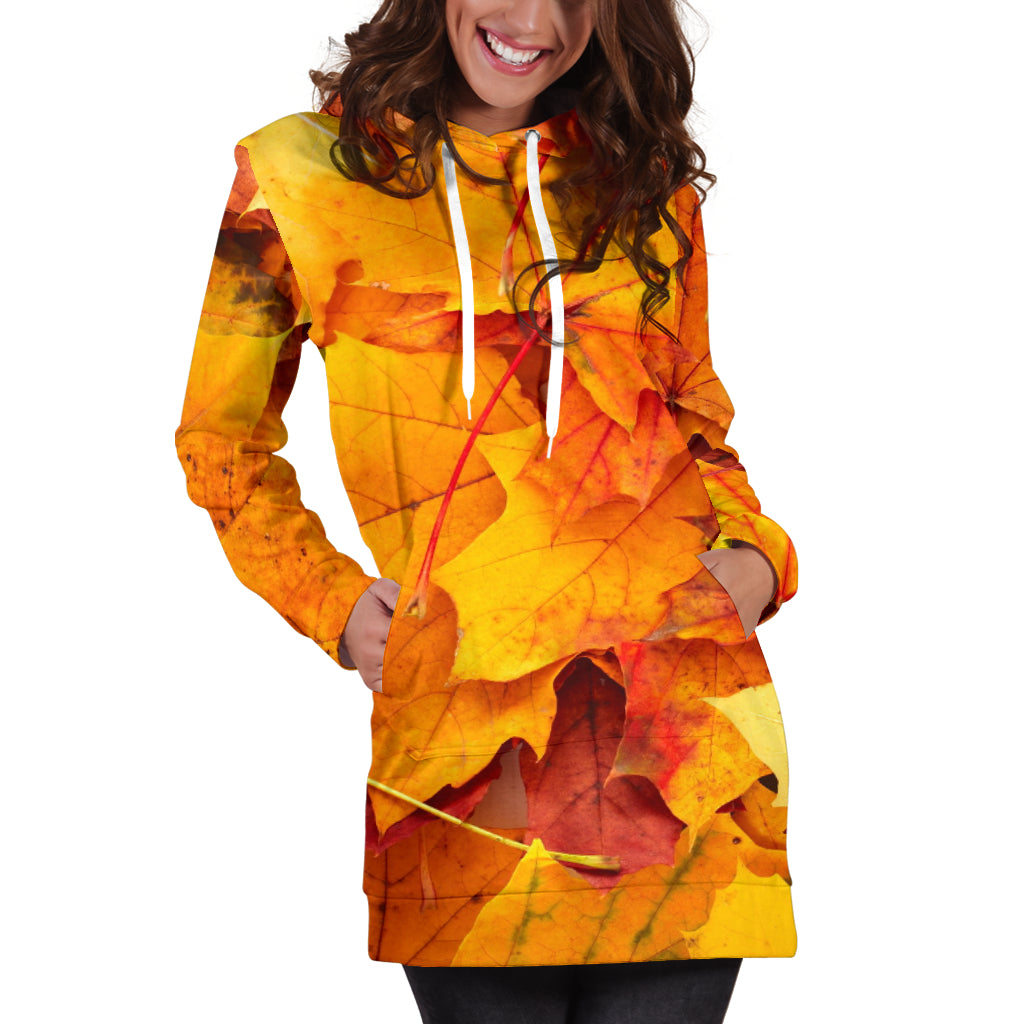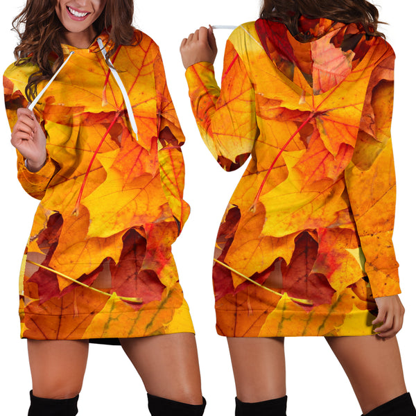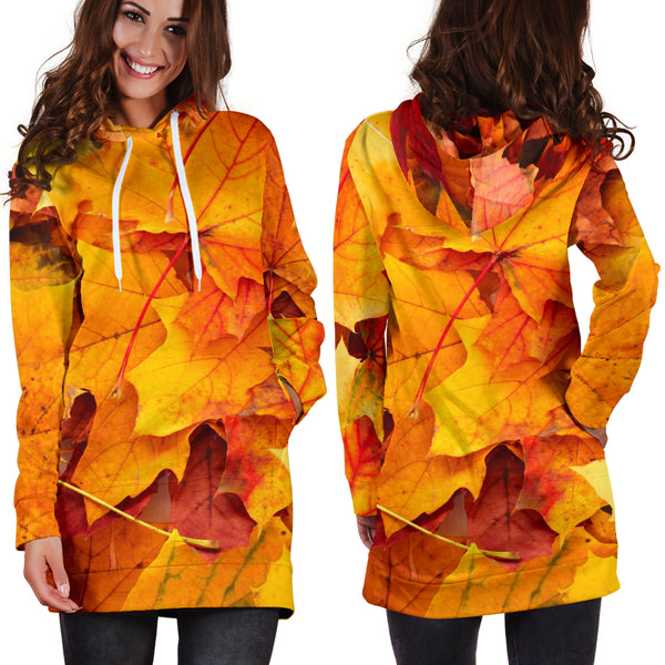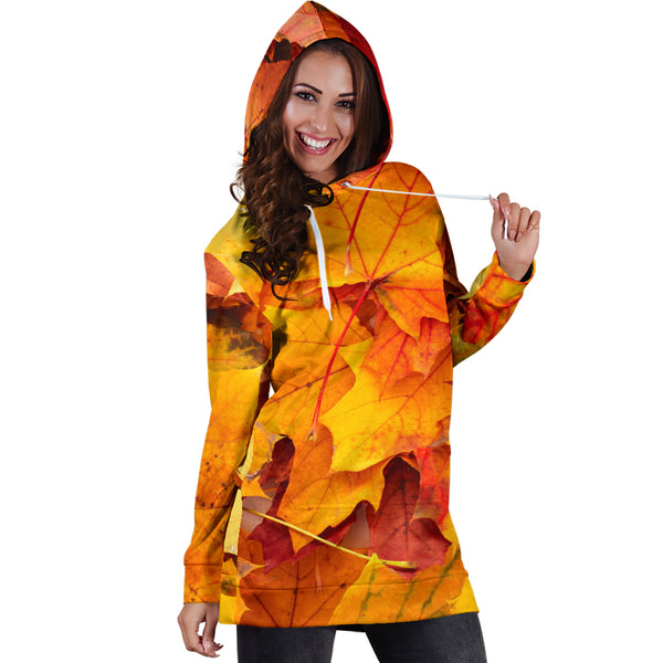 Studio11Couture Women Hoodie Dress Hooded Tunic Maple Leaves Nature Athleisure Sweatshirt