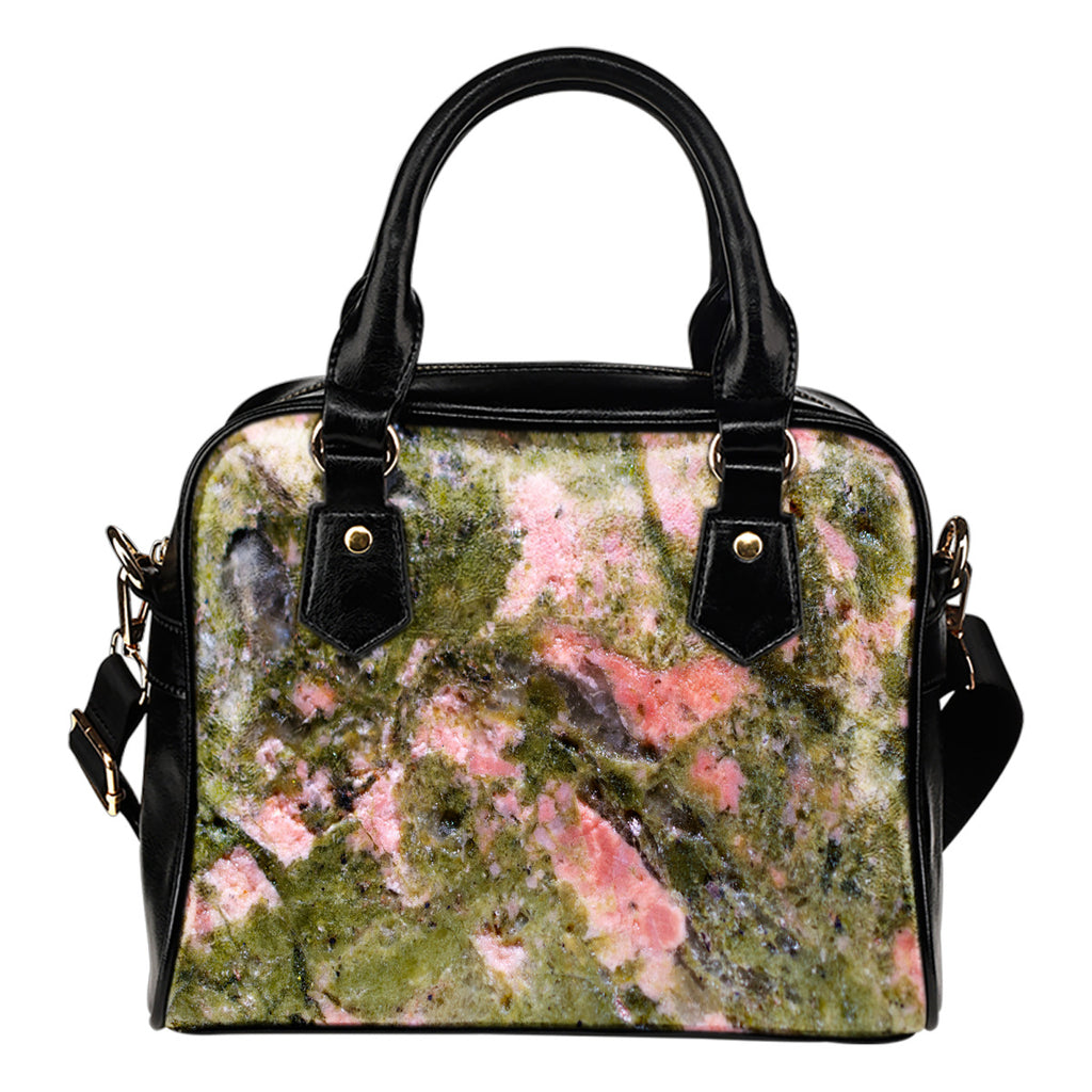 Marble Themed Design B2 Women Fashion Shoulder Handbag Black Vegan Faux Leather