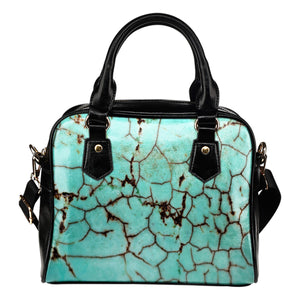 Marble Themed Design B3 Women Fashion Shoulder Handbag Black Vegan Faux Leather