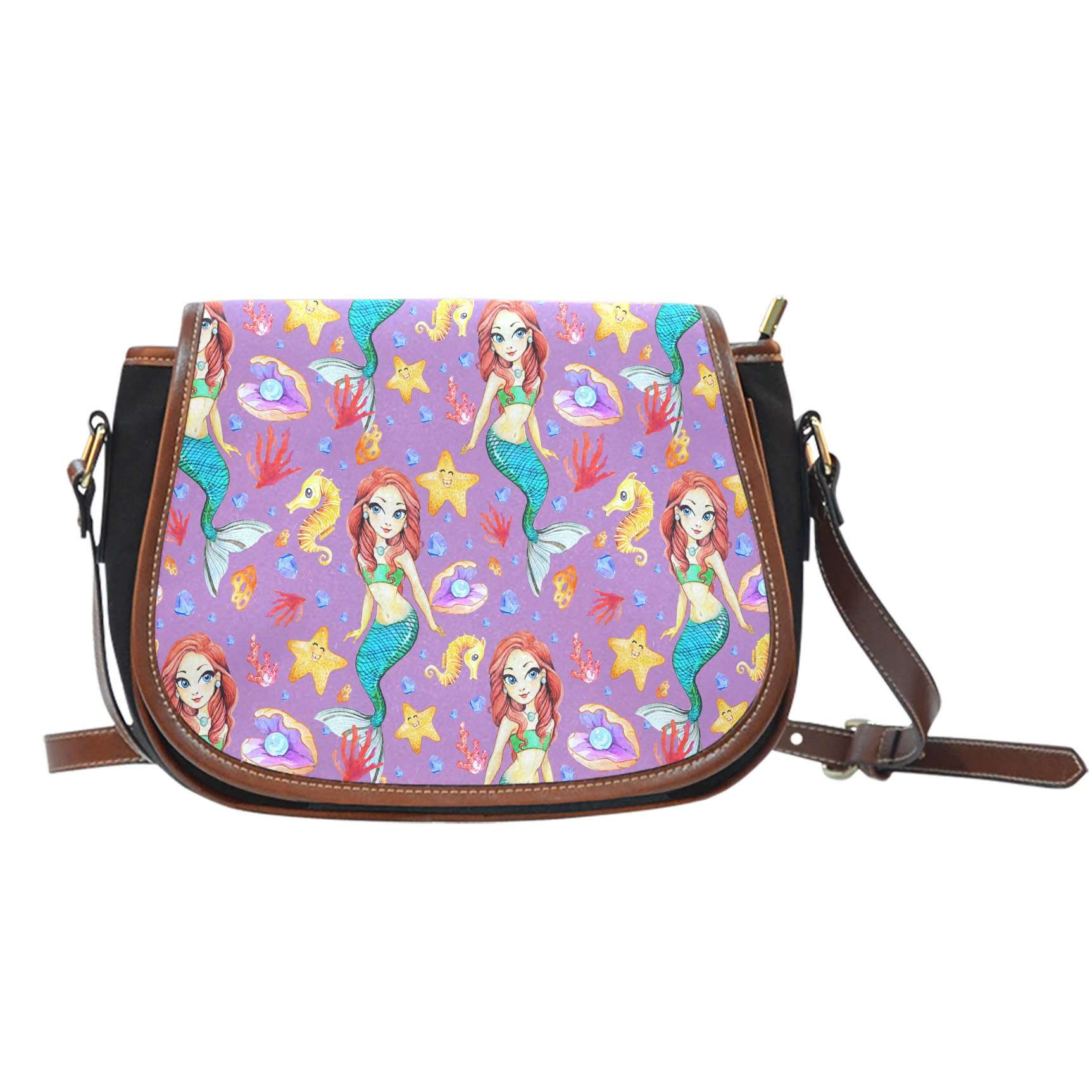 Mermaid Under The Sea Purple Crossbody Shoulder Canvas Leather Saddle Bag