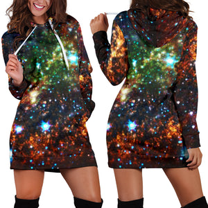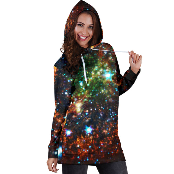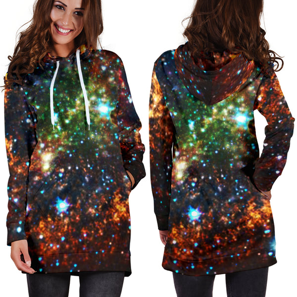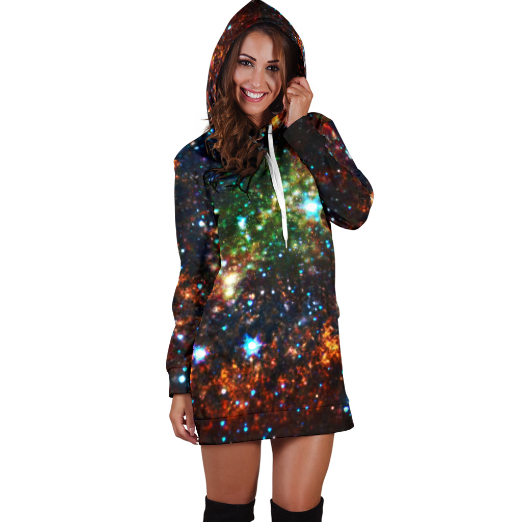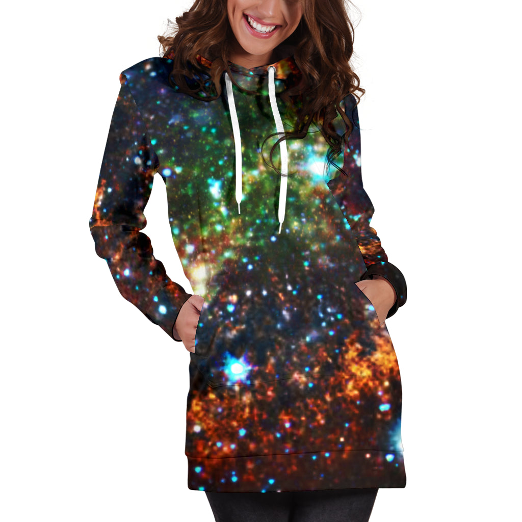Studio11Couture Women Hoodie Dress Hooded Tunic Naked Eye Galaxy Athleisure Sweatshirt