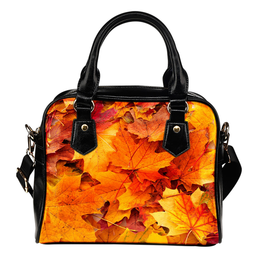Nature Themed Design B5 Women Fashion Shoulder Handbag Black Vegan Faux Leather