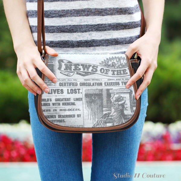 Newspaper (H2) Crossbody Shoulder Canvas Leather Saddle Bag