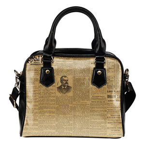 Old Newspaper (A6) Theme Women Fashion Shoulder Handbag Black Vegan Faux Leather