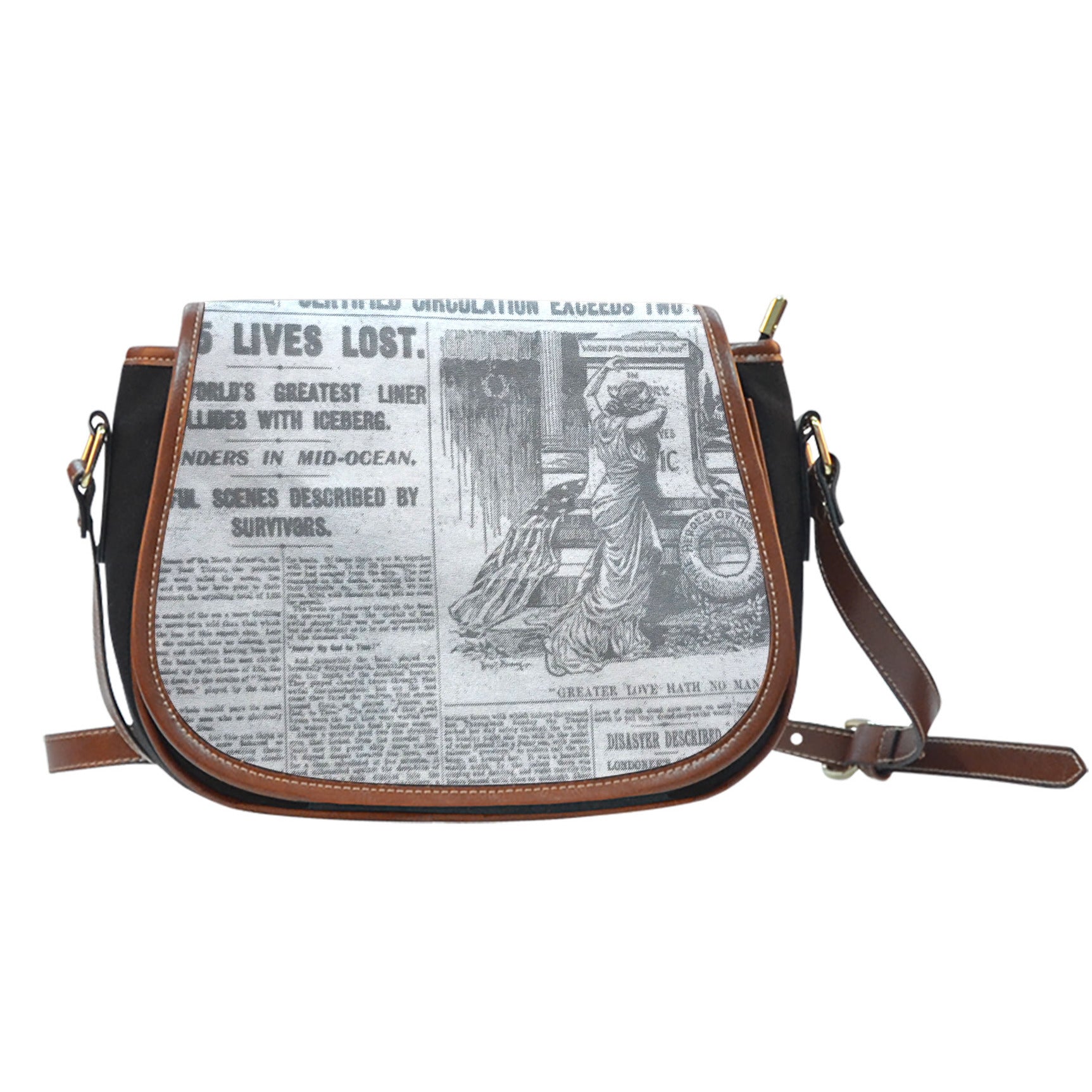 Old Newspaper Themed Design 12 Crossbody Shoulder Canvas Leather Saddle Bag