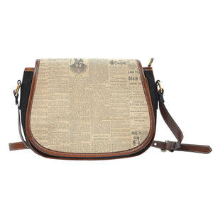 Old Newspaper Themed Design 6 Crossbody Shoulder Canvas Leather Saddle Bag