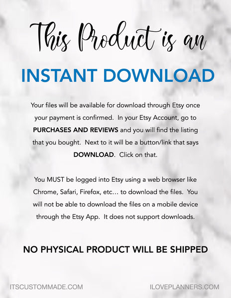 Also, you get instant gratification with our INSTANT DOWNLOAD delivery system. As soon as you finish checking out, our system will grant you access right away and you can download all of the files instantly. No more waiting. get instant access right away.