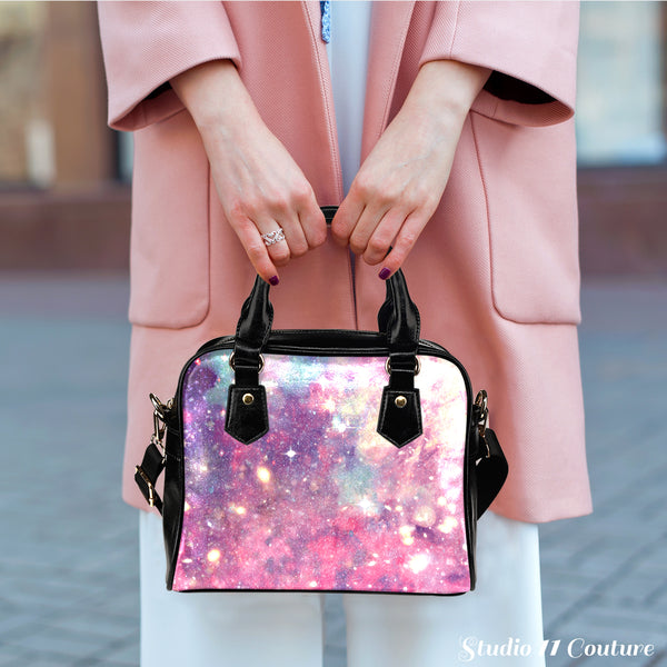 Unicorn Galaxy #2 Theme Women Fashion Shoulder Handbag Black Vegan Faux Leather