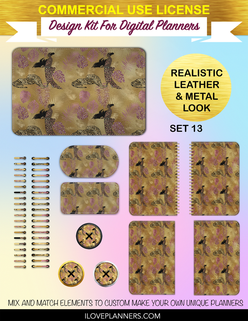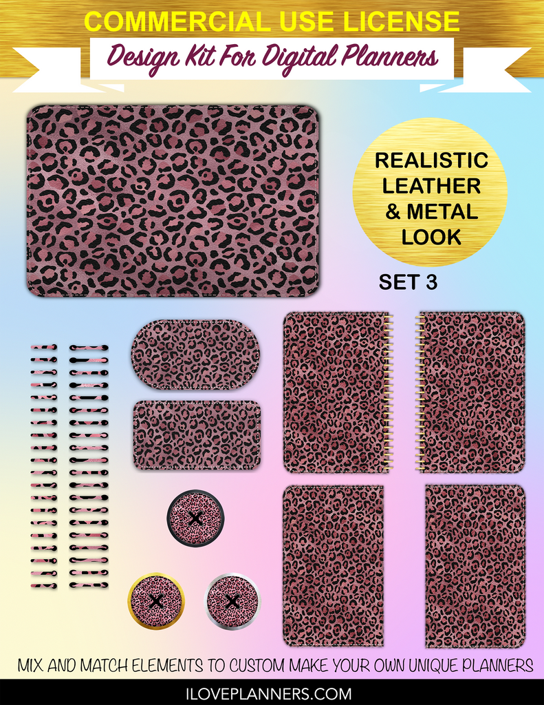 Pink and Gold Leopard Digital Planners, Spirals, Coils, Customize Your Digital Planners, Commercial Use OK, Digital Planners, Digital Journals, Compatible for PC, Mac, CANVA. #86