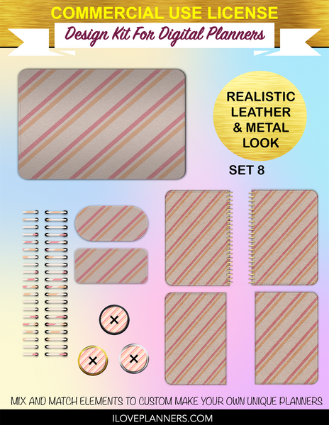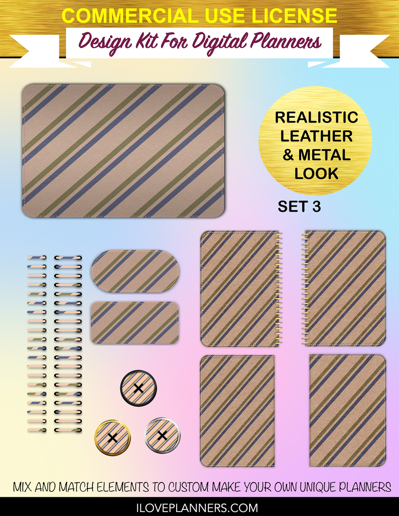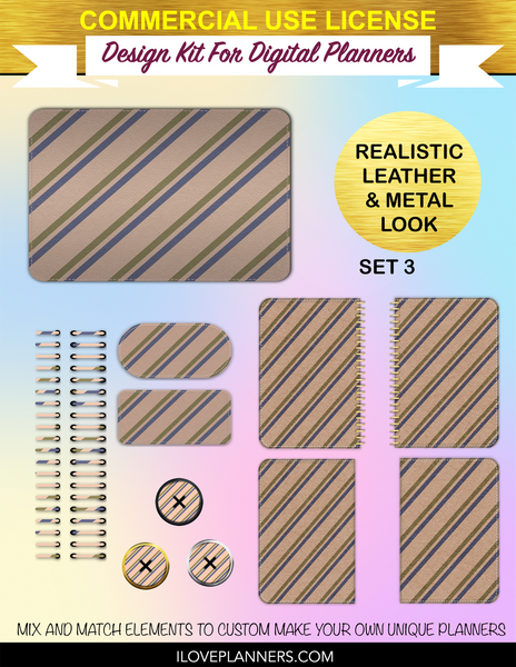 Pinstripe Three Color Pattern for Digital Planners, Spirals, Coils, Customize Your Digital Planners, Commercial Use OK, Digital Planners, Digital Journals, Compatible for PC, Mac, CANVA. #5