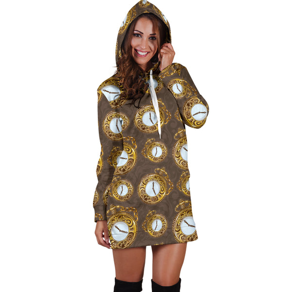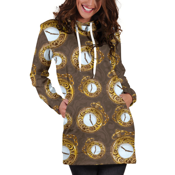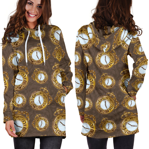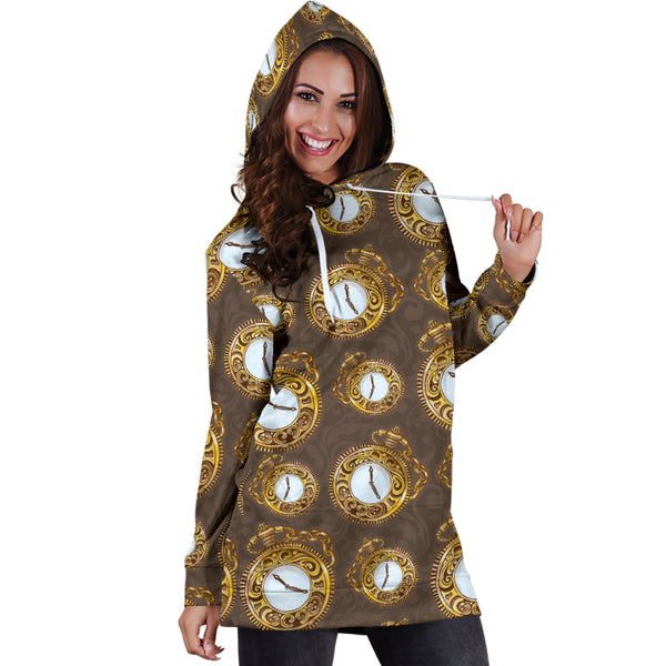 Studio11Couture Women Hoodie Dress Hooded Tunic Pocket Watch Alice In Wonderland Athleisure Sweatshirt