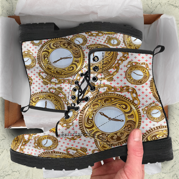 - Features eco-friendly leather with a double-sided print and rounded toe construction.