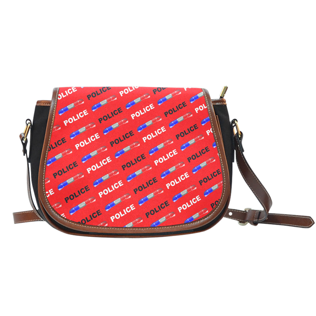 Police Themed Design 4 Crossbody Shoulder Canvas Leather Saddle Bag