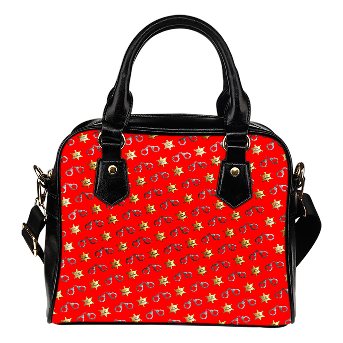Police Themed Design B11 Women Fashion Shoulder Handbag Black Vegan Faux Leather