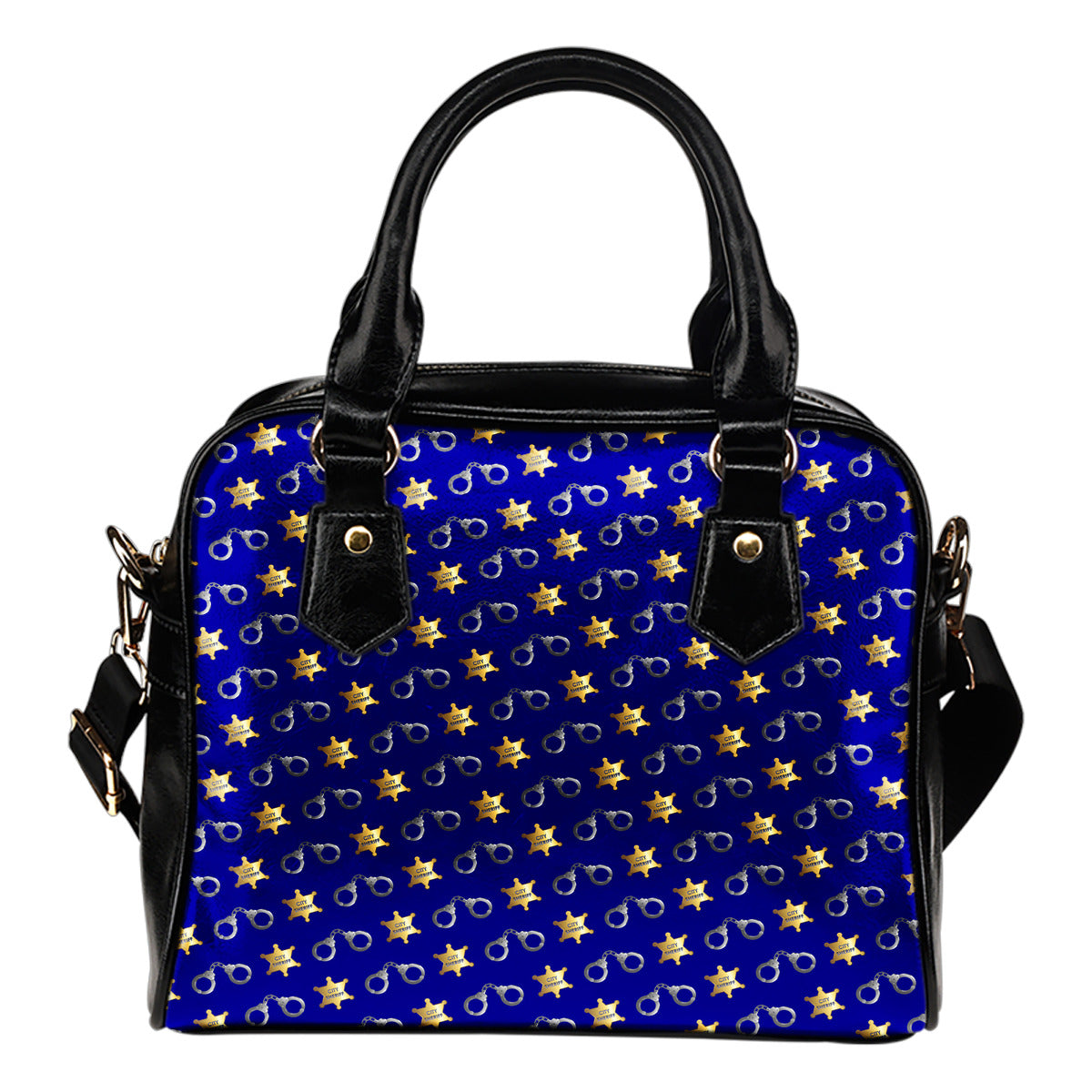 Police Themed Design B2 Women Fashion Shoulder Handbag Black Vegan Faux Leather