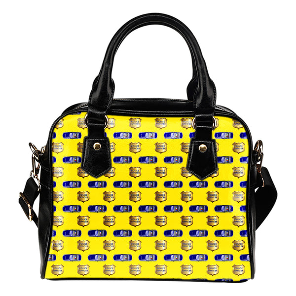 Police Themed Design B3 Women Fashion Shoulder Handbag Black Vegan Faux Leather