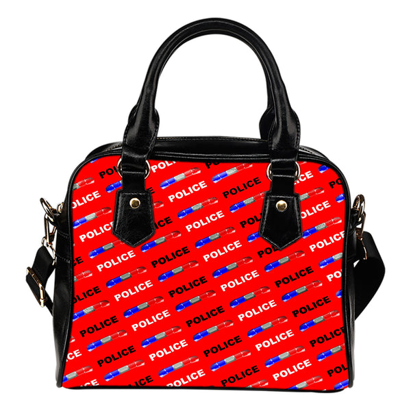 Police Themed Design B4 Women Fashion Shoulder Handbag Black Vegan Faux Leather