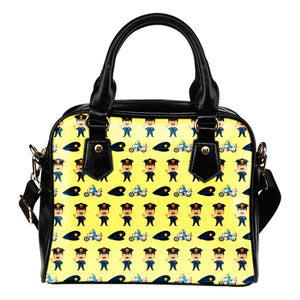 Police Themed Design B8 Women Fashion Shoulder Handbag Black Vegan Faux Leather