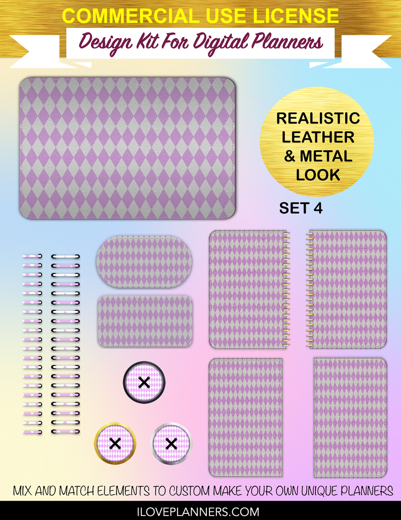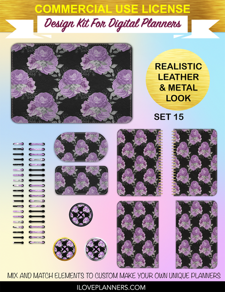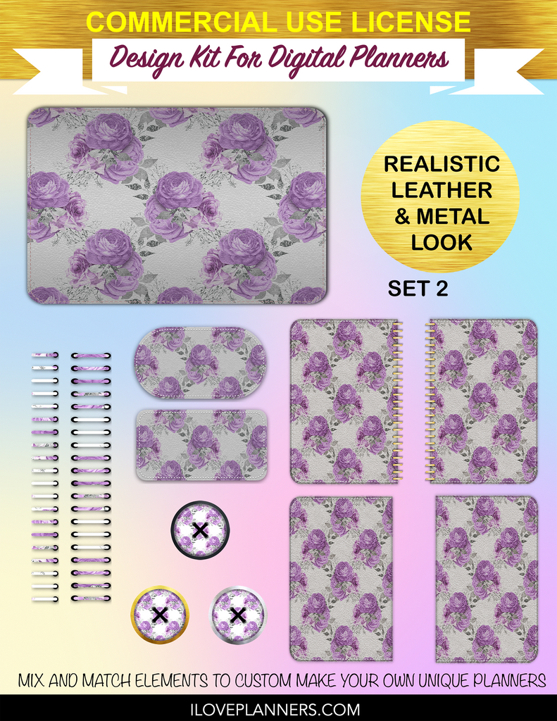 Purple and Silver Floral Digital Planners, Spirals, Coils, Customize Your Digital Planners, Commercial Use OK, Digital Planners, Digital Journals, Compatible for PC, Mac, CANVA. #39