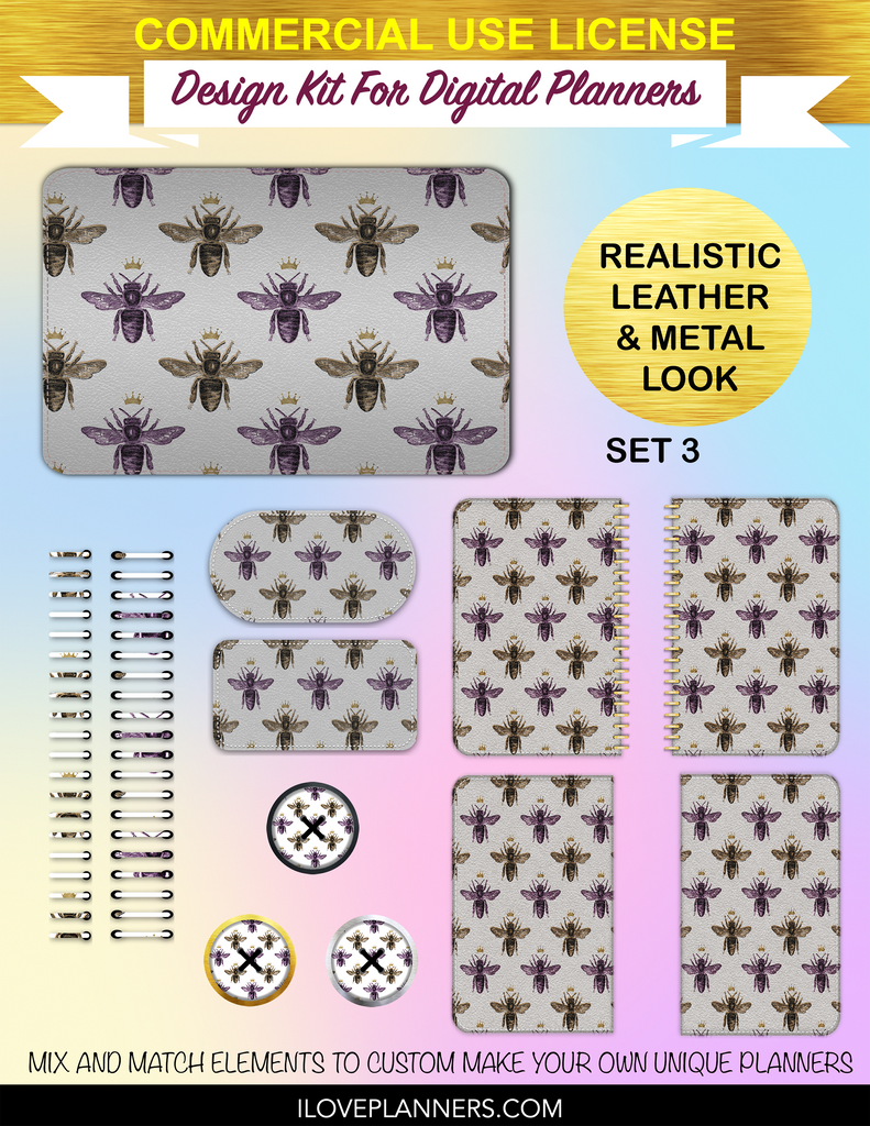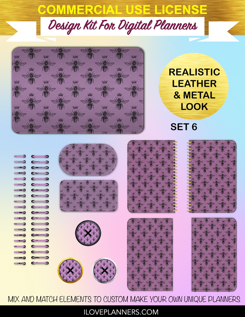 Queen Bee Digital Planners, Spirals, Coils, Customize Your Digital Planners, Commercial Use OK, Digital Planners, Digital Journals, Compatible for PC, Mac, CANVA. #67
