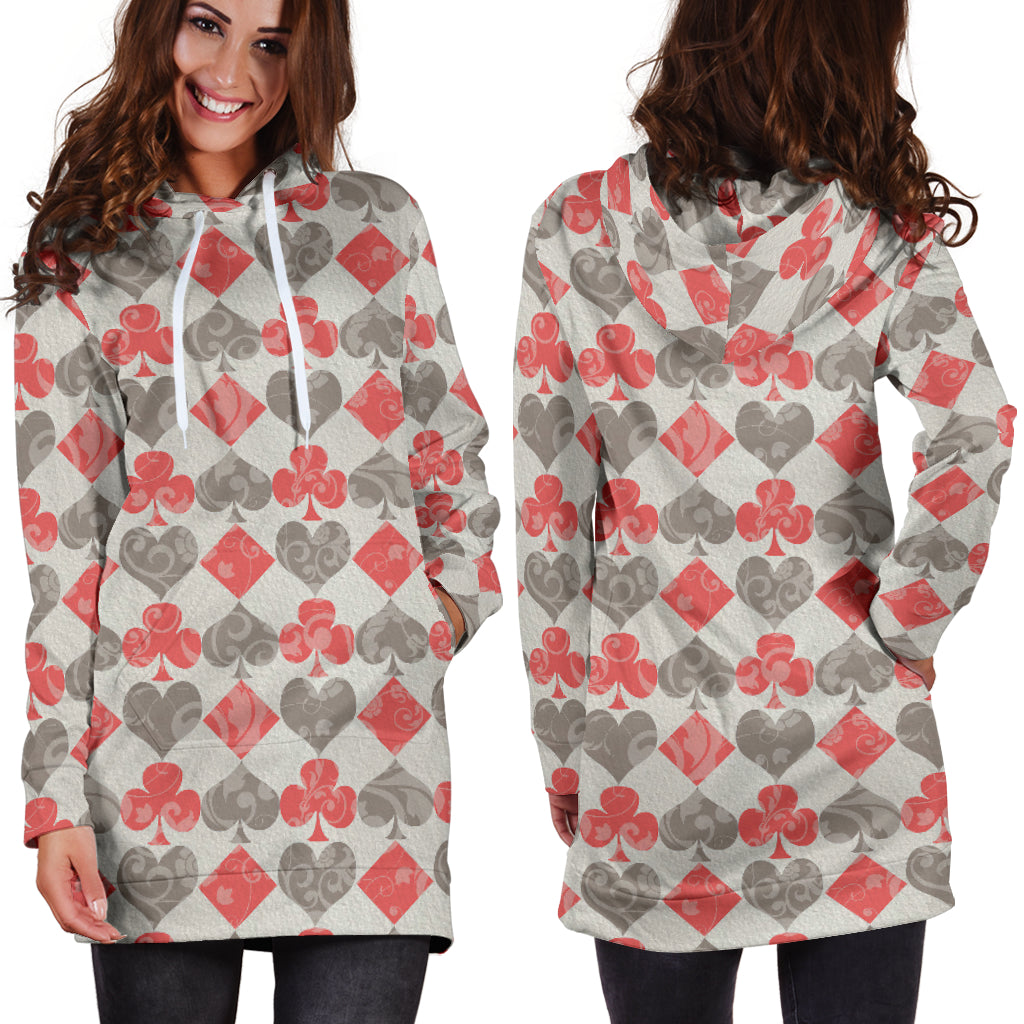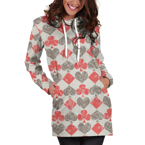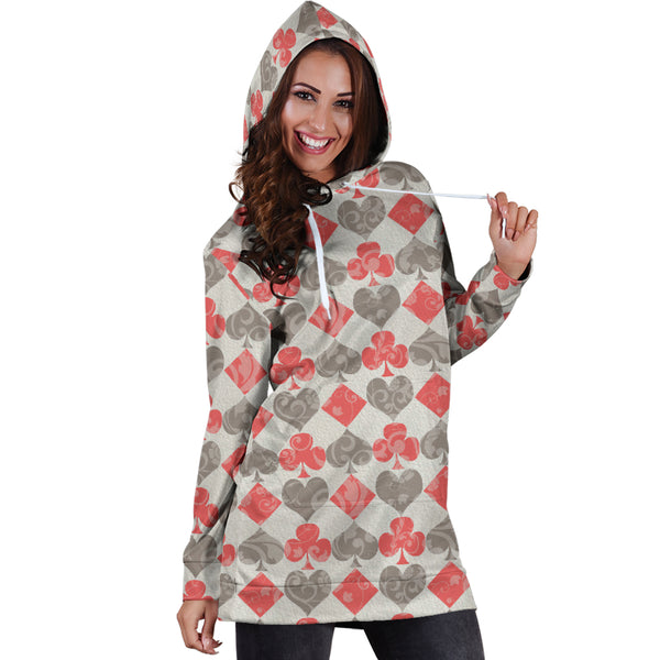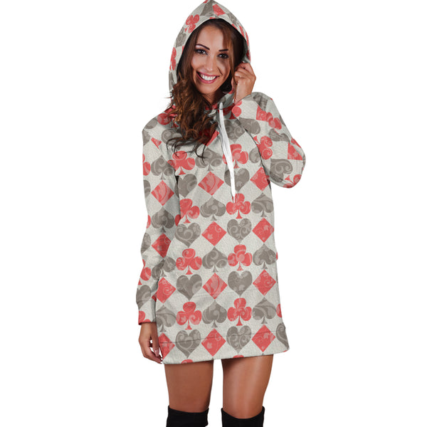 Studio11Couture Women Hoodie Dress Hooded Tunic Red Card Decks Alice In Wonderland Athleisure Sweatshirt