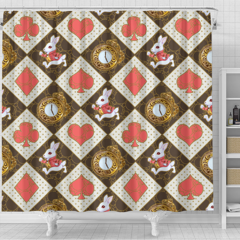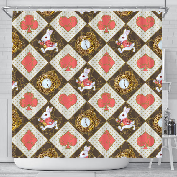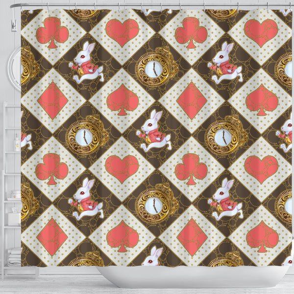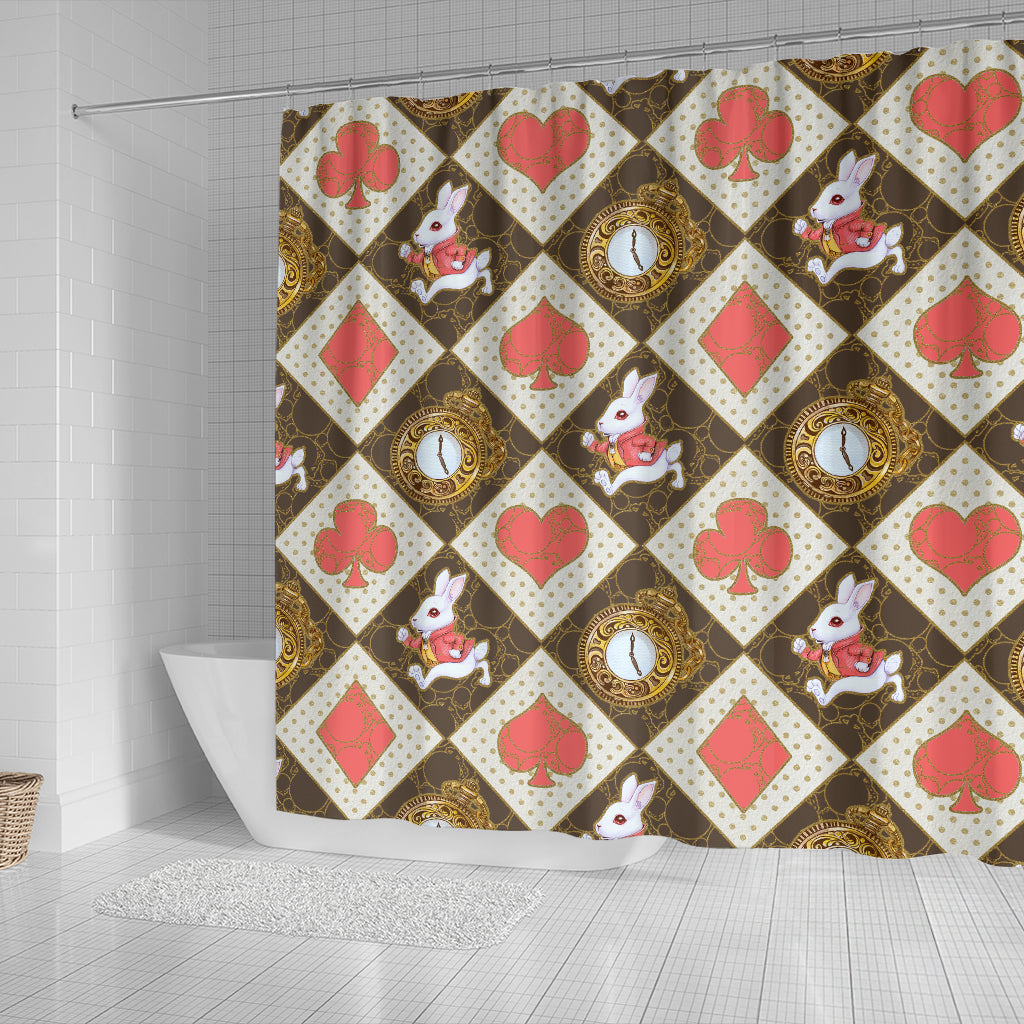 Red Card Decks And White Rabbit Alice In Wonderland Shower Curtain