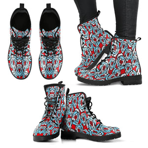 Red White Blue Floral Women Leather Boots