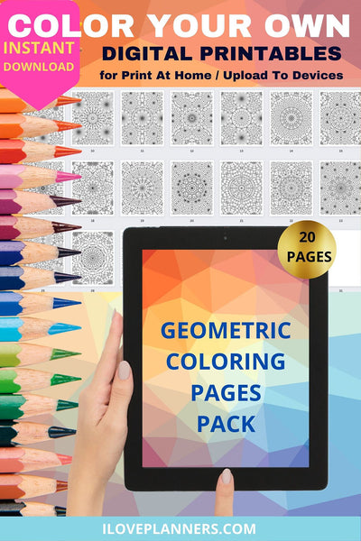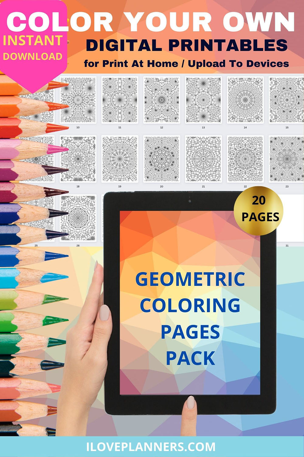 GEOMETRIC COLORING PAGES PACK, Printable, Instant Download. RS22-2A