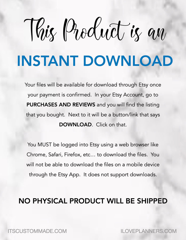 - Instant Download, no need to wait for any physical product to arrive in the mail.